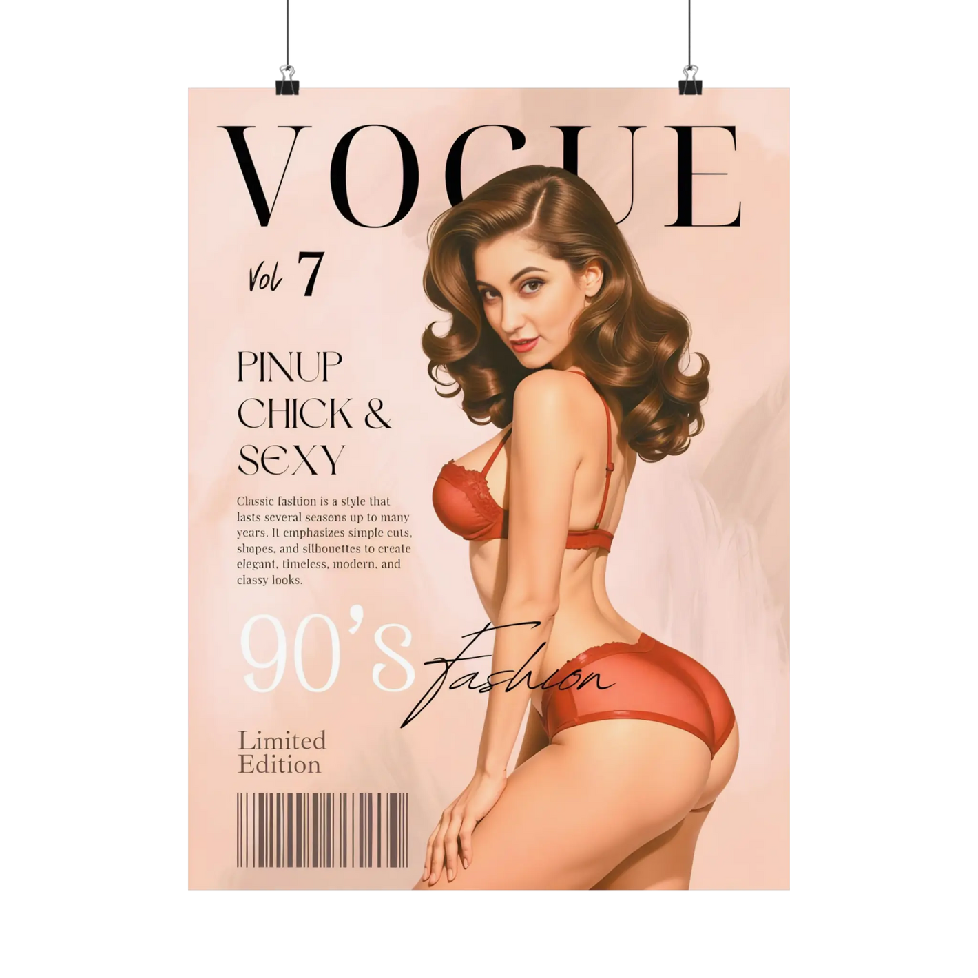 Create a one-of-a-kind pinup portrait tailored to your style and preferences. Perfect for unique gifts or adding a retro vibe to your decor.90's Vogue Pinup Portrait